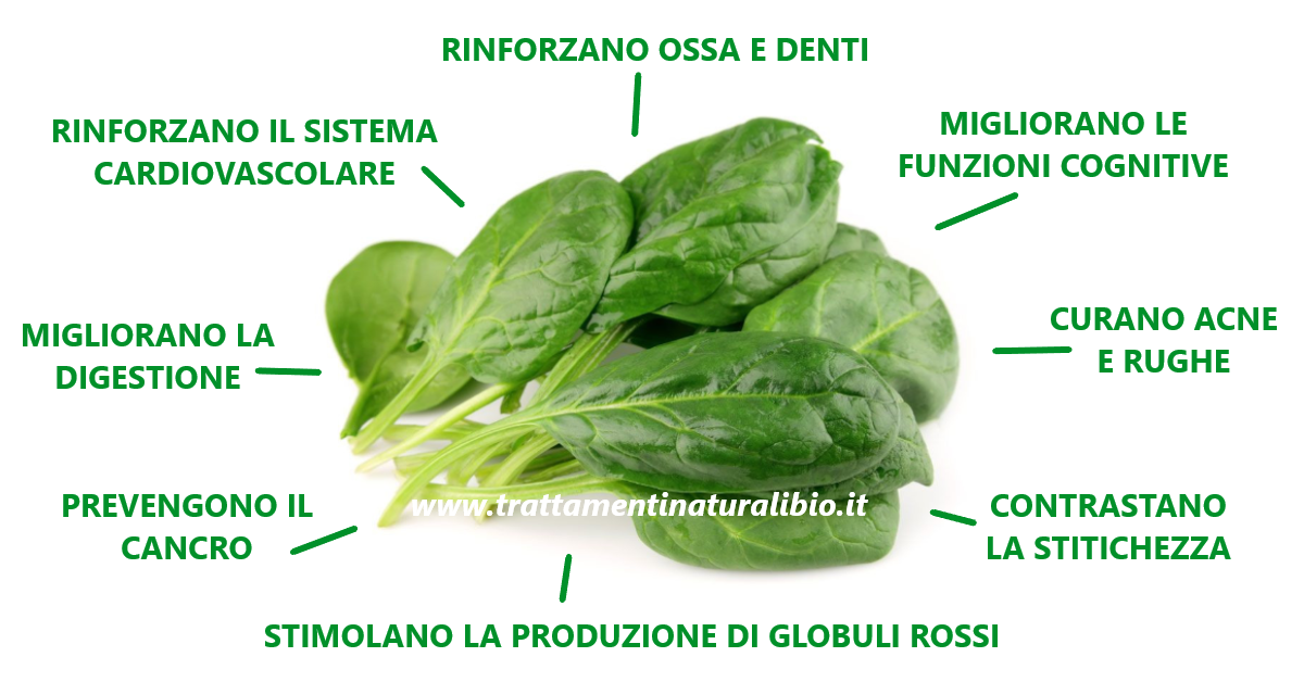 Gli elementi appena visti, conferiscono agli spinaci proprietà utili a sostenere la salute dell’organismo su diversi fronti. In particolare, il consumo di queste verdure è stato associato a diversi effetti benefici sul nostro organismo come: