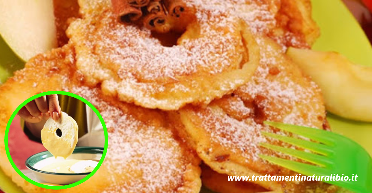 La ricetta, semplice da preparare, prevede l’uso di farina, latte e, ovviamente mele, e una cottura al forno, molto più leggera di quella classica, cioè fritta.
